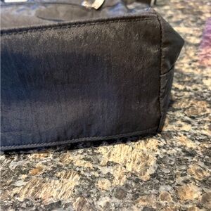 There are two spots on the bag. One on the bottom and one on the Front. Very minor. The hardware is a bit tarnished