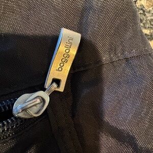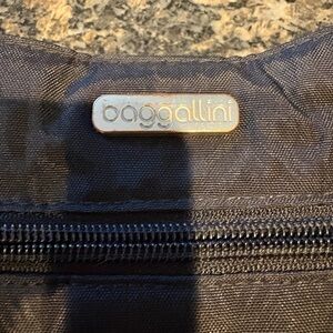 Chic Baggallini crossbody in dark blue. Features a convenient front zipper pocket. Ideal for daily use.