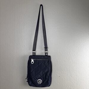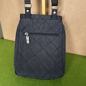 Baggallini Crossbody Nylon Grey Quilted adjustable crossbody bag with silver hardware and zipper - Double zipper inner compartment with zip pocket and credit card holders . Beautiful condition ! Versatile durable bag ! Bag measures 9" x 4.5" x 1.5" l. Thank you for your consideration of this versatile useful crossbody bag by Baggallini.