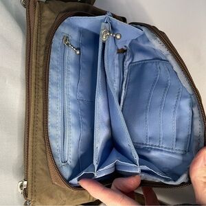 Stylish and functional Baggallini crossbody bag in a versatile green color. Perfect for everyday use.
