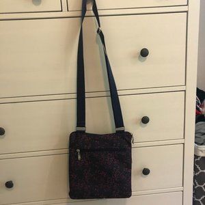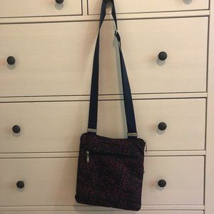 This is a great carry-on bag to take with you anywhere. It has many different pockets to store whatever you need for your trip. There is also a small purse that is attached to the bag and it is located on the big pouch on the inside. This bag is a perfect size to take with you and doesn't take up much space at all!
