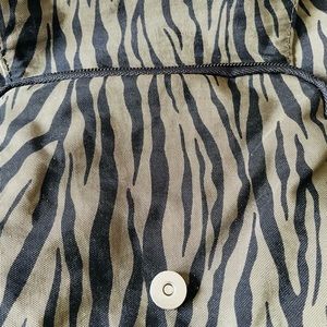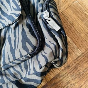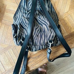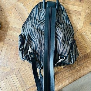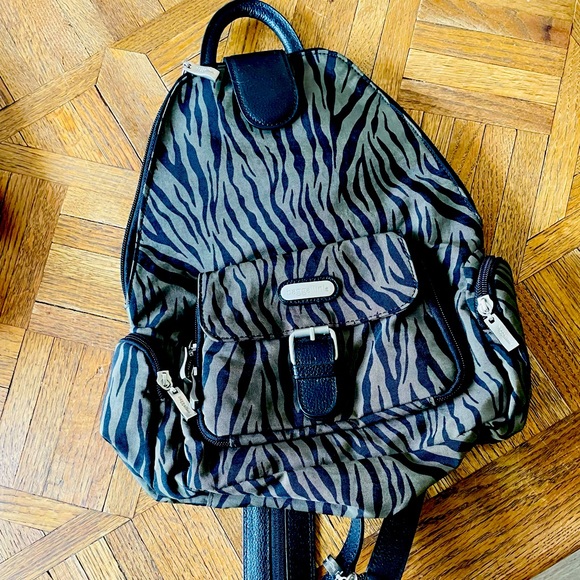 Baggelini camo green/black animal print backpack with zippered strap to convert to over the shoulder bag.