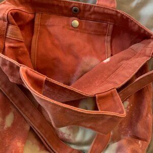 Salmon/Pink colored BAGGU Duck canvas bag, hand bleach sprayed. Great color and in good, used condition.