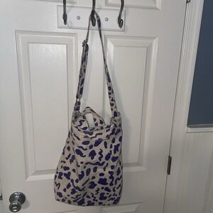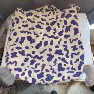 Baggu Duck Bag Shopper Canvas Tote Leopard Print Purple White Machine Washable