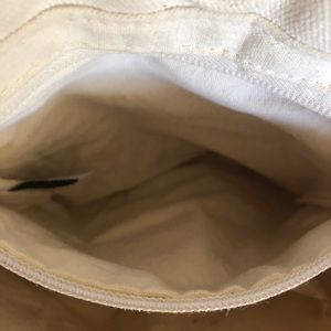 This cutie is no longer available. It is in great shape aside from some discoloration (combo of past stain treatment and more recent stains) which is on the inside/back and is hardly noticeable. Recommend not wearing dark denim or other items that may rub off onto lighter fabrics and consistently keeping it away from dirty surfaces.