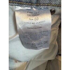 Baggy High Rise Wide Leg Distressed Jeans Pink Lily Light Wash Denim Size 32