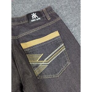 Baggy Red Ape Jeans Mens 38 Brown Relaxed Loose Embroidered Grunge Y2K 35x29