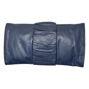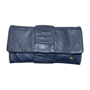 Bagheera Vintage Navy Blue Striped Leather Clutch with Snap Closure