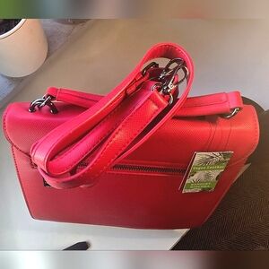 This is a stunning Bagley Mischka red designer handbag. Vegan leather. New with tag. Perfect for any occasion, it adds a pop of color to your outfit.