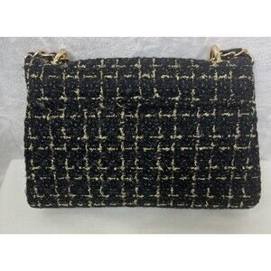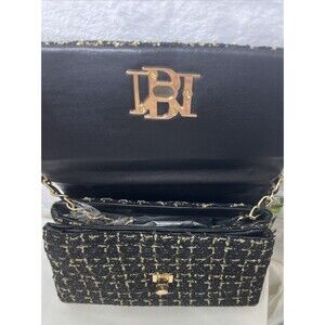 Bagley Mischka Textured Messenger Bag Tweed Black Gold Vegan Leather NEW