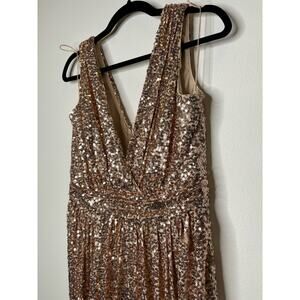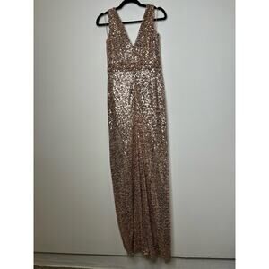 Gorgeous V-neck sparkly pink, gold maxi dress