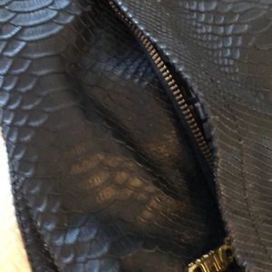 Lovely leather Trina black snake bag with side zipper opening for more items ,med to large
