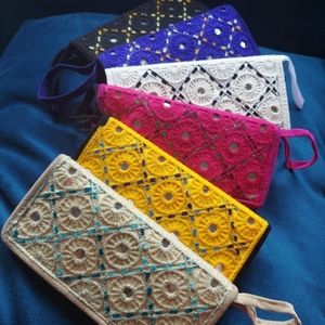 Handmade embroidered clutch bags. available in different colours. leave a comment about what colour you want when buying.