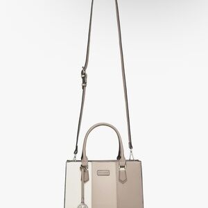 cream, tan, shoulder bag, structured, minimalist, two-tone, leather look, classic, versatile, fashion accessory
