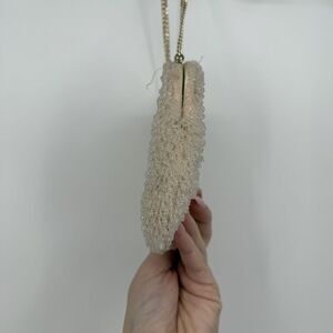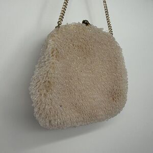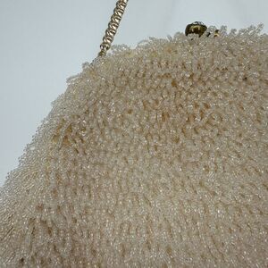 Details: allover beaded, small chain strap, clasp, satin interior