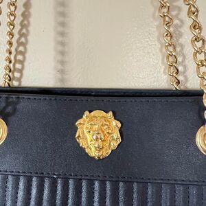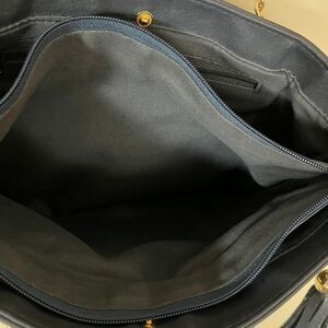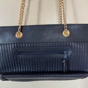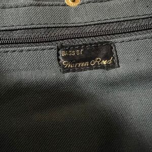 Warren Reed navy bag with gold hardware. Bag is a bit folded - see pic showing side view.