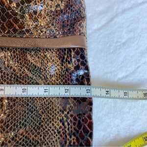 Bags By Pinky Miami Florida Faux Snake Skin Purse. Great used condition. Faux brown tone snake skin, micro suede texture. Top zipper closure with 1 inside zipper pocket. 2 front zipper pockets, one missing gold pull. Measures approximately 13”x12”. Shoulder drop 9.5”.
