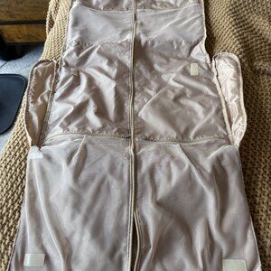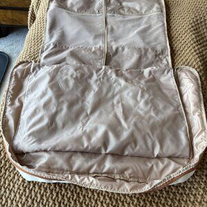 Great bag, only used once. Lot of pockets, unfolds extra long for full length coats and dresses. Shoulder shtrap and handles. Two big pockets on the front, this bag can hold a lot!