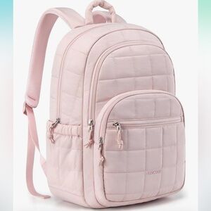 Bagsmart Quilted Backpack Blush Pink Travel Work Study Laptop Washable H2O