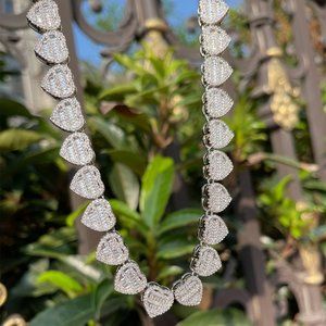 Baguette Crushed Heart Necklace Iced Out Choker Micro Pave Prong Setting Chain