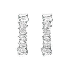 Baguette Cut Diamond Huggie Earrings Prong Setting 18K White Gold 0.58Cttw