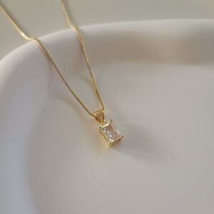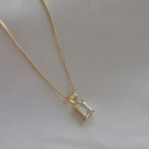 Baguette Rhinestone Charm Necklace Gold Filled on Box Chain