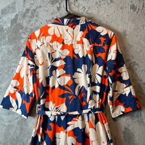 Bagutta Women's Blue Orange Floral Fit & Flare Cotton Hidden Button Down Tie Dress Womens Size Large In great condition from a smoke free home.