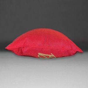 - Red pillow with script "Bah Hum Bug" across front in gold glitter sequins