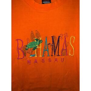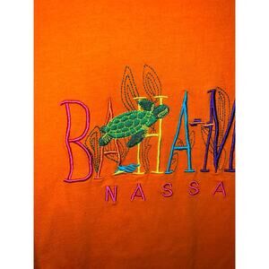 Bahamas Nassau Turtle Shirt Embrodery Orange 2000s M Medium Tee