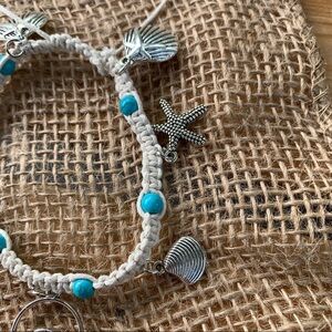 “Bahia Honda” Adjustable Macrame Anklet with Charms and turquoise colored beads