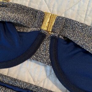 Bahia Maria's Catalina Bikini Set is a real stunner. You'll see why the color is "shiny blue" - this is made of a beautiful, shimmering fabric and adorned with pearls. We think this is the perfect statement bikini, especially when paired with the matching Julieta skirt. This style is also available in ivory.