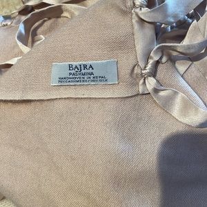 Beautiful champagne colored handwoven snd beaded Bahrain Pashmina with satin ribbon detail NEVER WORN, perfect condition