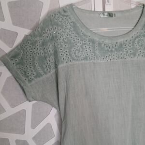 Bai Li Pastel Green Eyelet Embroidered Oversize Dress Womens L/XL Lagenlook Boho