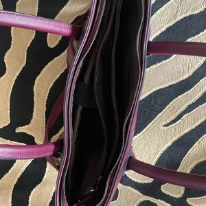 BaiMay laptop bag. Tons of space & pockets. Padded laptop sleeve. Good condition; some signs of wear. Burgundy purple with gunmetal grey hardware.