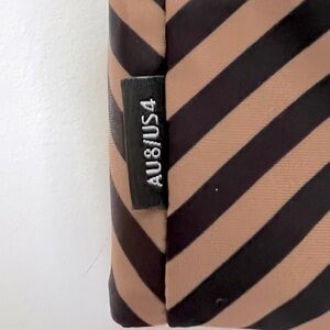 Stylish asymmetrical bikini one shoulder top with black and brown stripes. Can be mixed and matched with other pieces from Baiia. Perfect for a chic beach look for your next vacation.