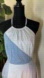 Like new worn once washed and clean. Chic asymmetrical dress with blue and white stripes. Halter neckline adds elegance.