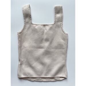 Bailey 44 Beige Knit Square Neck Bodycon Sweater Tank Crochet Flowers Size XS