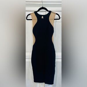 This dress is so hot! Bailey 44 black bodycon dress with sheer panels size x-small. NWOT, I took off the tags for a Vegas vacation but never wore it. Pull-over style. Hugs perfectly. The sheer panels help create the perfect hour glass figure. Perfect for a hit date night. Sexy and confident! Great little black dress.