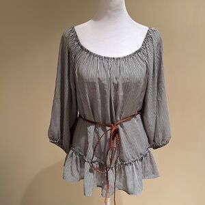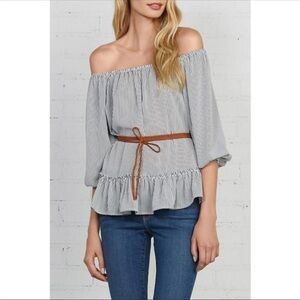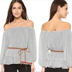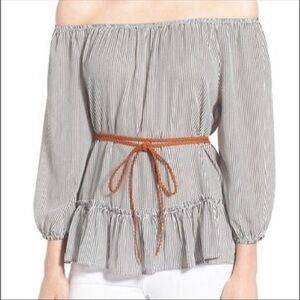 Bailey 44 Christine Navy Striped Off The Shoulder Blouse Top Rope Belt Medium