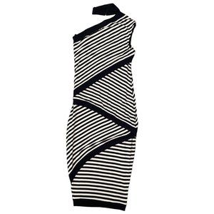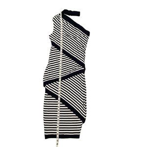 Bailey 44 Climbing Vine Asymmetric Choker Sleeveless Criss Cross Stripe Dress S