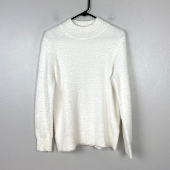 Bailey 44 Cream Fuzzy Mock Neck Sweater Pullover Super Soft Cozy Soft Girl Small