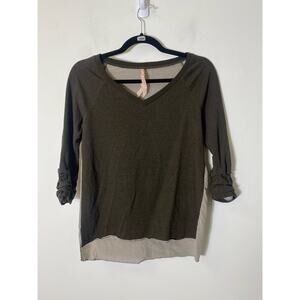 Bailey 44 Dark Gray/Brown Long Sleeve Mixed Media V-Neck Top Sz XS