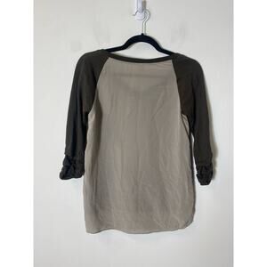 Bailey 44 Dark Gray/Brown Long Sleeve Mixed Media V-Neck Top Sz XS Great Condition Shirt