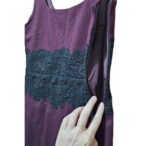 This Bailey 44 Dracula's Lover Cocktail Party Dress in medium size features a stunning black lace overlay. The sleeveless design makes it perfect for any elegant evening event.