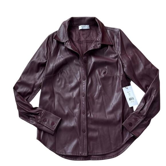 Bailey 44 Ellana Top, faux leather blouse, burgundy shirt, minimalist capsule piece, holiday outfit, date night top, edgy preppy, vegan leather shirt, NWT designer top, festival fashion, coachella, stagecoach, Pinterest trends 2025, XS