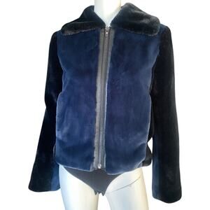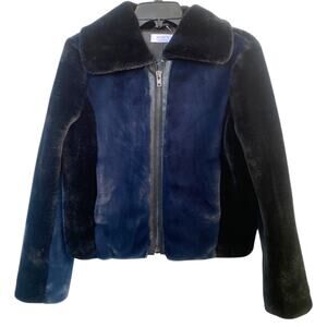 Bailey 44 Faux Fur Zip-Up Coat Black & Navy Women’s Size Small NWT