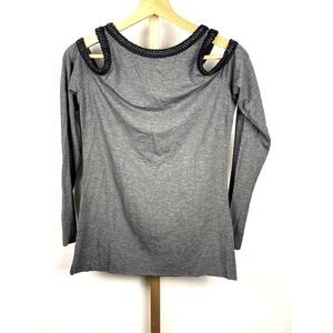 Bailey 44 Faux Leather Trimmed Cold Shoulder Top Long Sleeve Grey Sz S EUC