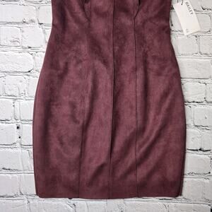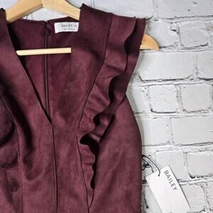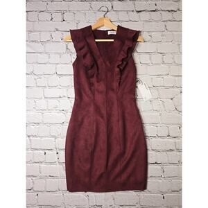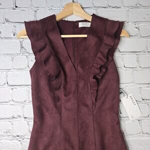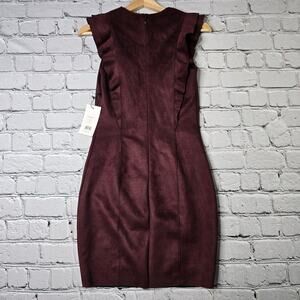Bailey 44 Glade Skiing Faux Suede Plum Burgundy Sheath Ruffle Dress New Size Sm