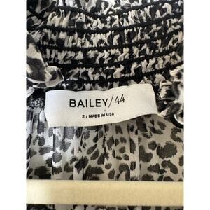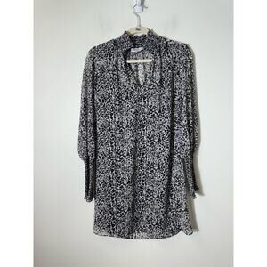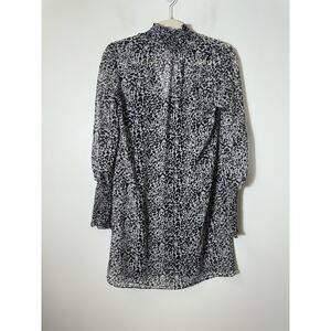 Bailey 44 Gray Leopard Print Long Sleeve Mini Dress Sz 2. Semi-sheer outer layer and black slip dress that goes underneath. Smocked neck with buttons. Cute going out dress. Great condition.