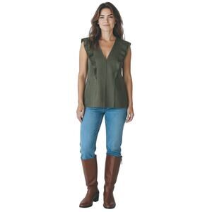 Bailey 44 Green V Neck Sleeveless Ruffle Top size Large